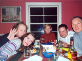 Dinner at Ian and Margie's. Laurie, Pat Mastelotto, Margie, Me, Robert Fripp and Rick Kurtz, 2001.